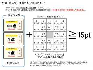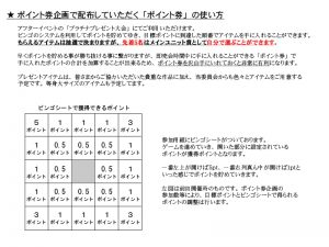 ささやかな景品やアフターイベントのプラチナプレゼント大会で少し有利になるポイント券が当たります。